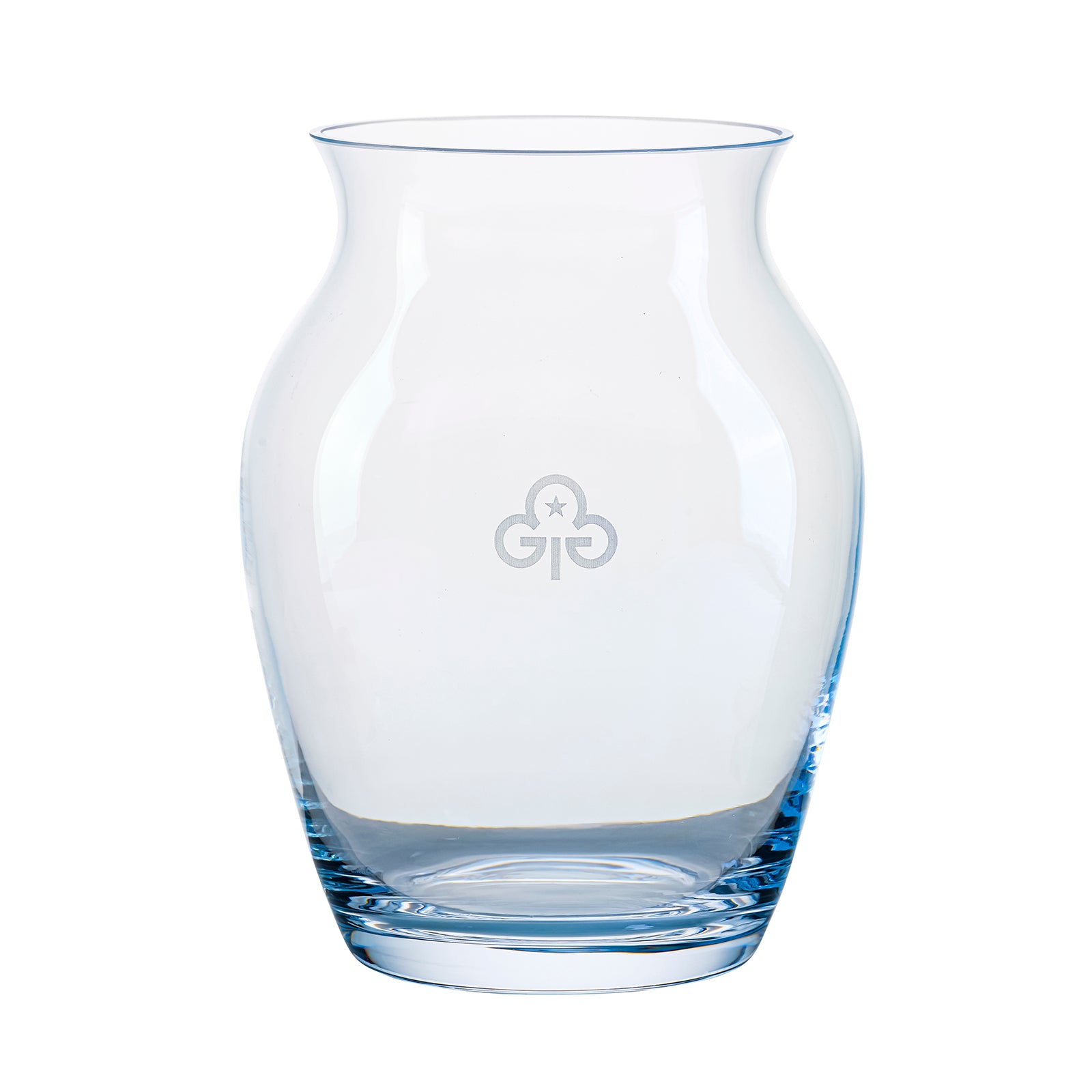Fill this beautiful large glass vase with a large bunch of flowers to make a statement in any room. Vase features official Girlguiding trefoil.