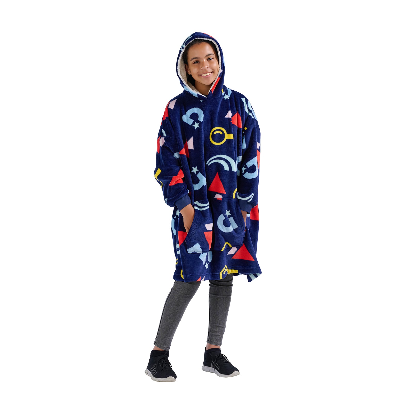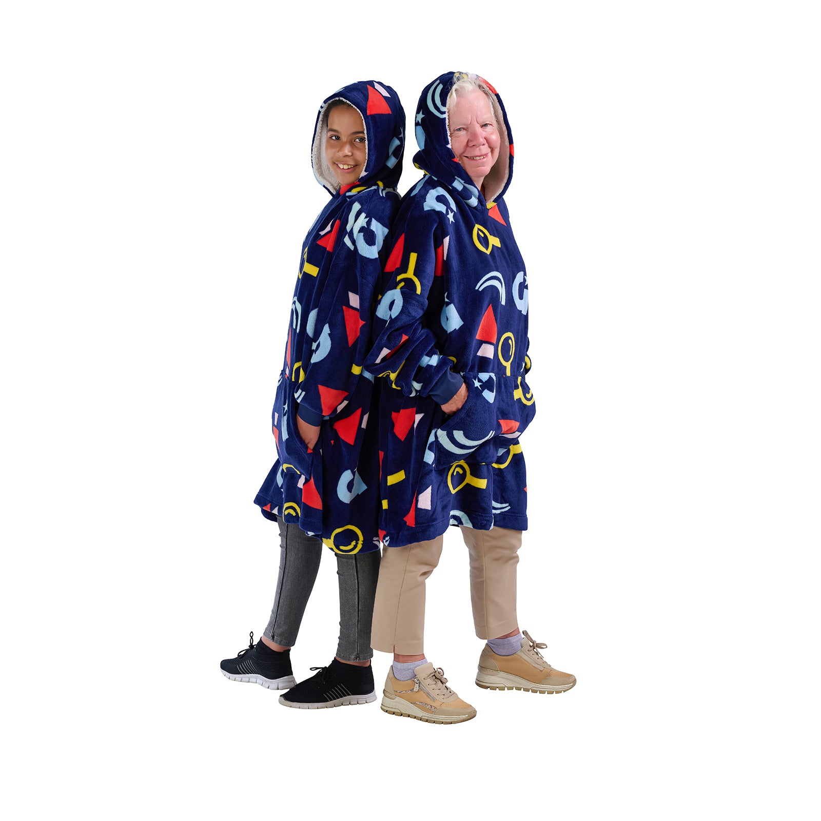 Our oversized hoodies, available in both adult and child sizes, are made from snuggly fleece fabric and feature bold and bright Girlguiding icons.