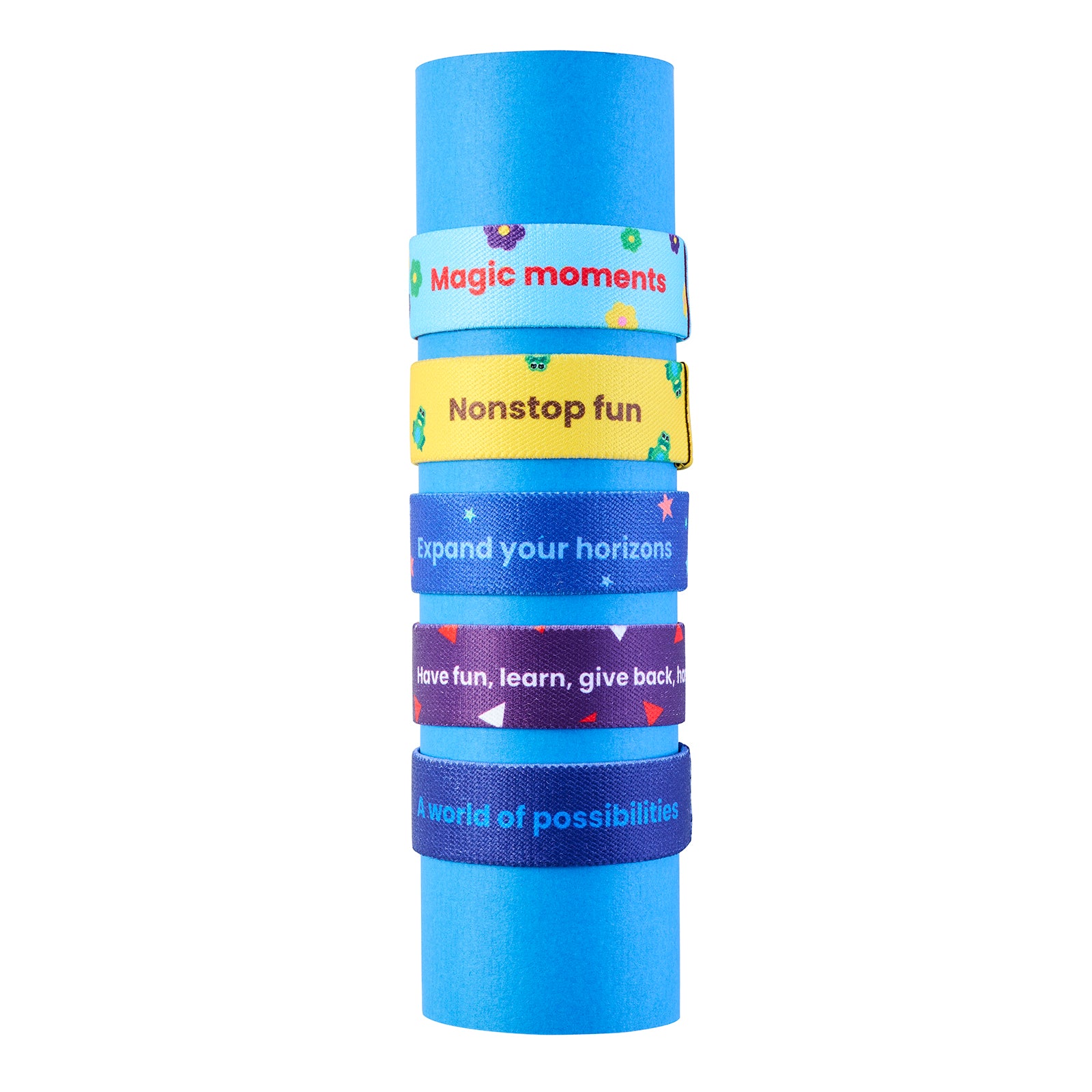 Guides themed stretch wristband – featuring icons on one side and the phrase “expand your horizons” on the other. Wear yours and show your support for Girlguiding.