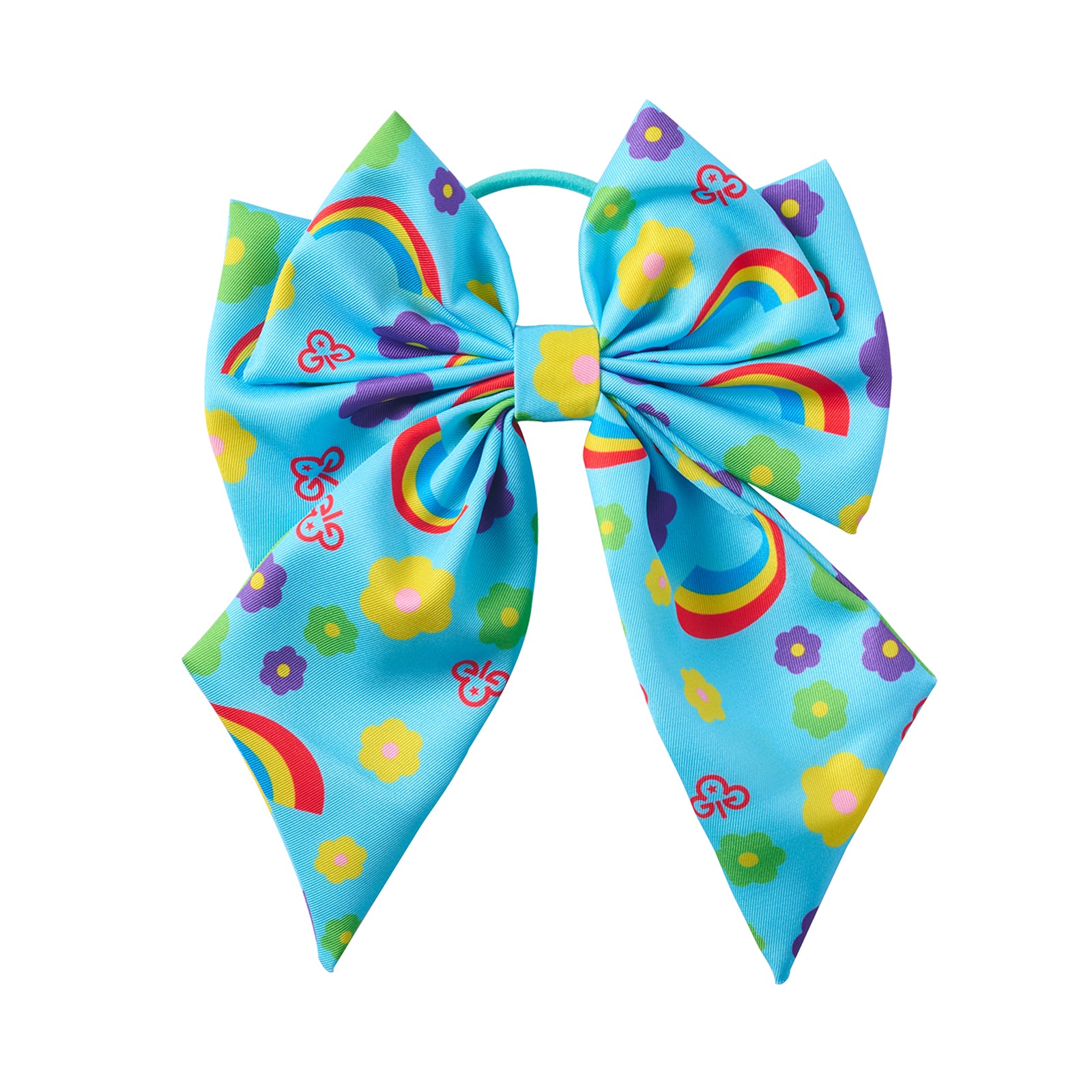 Bright and colourful bow on a hair bobble. Great for wearing to Rainbows or showing off your Rainbow colours everyday!