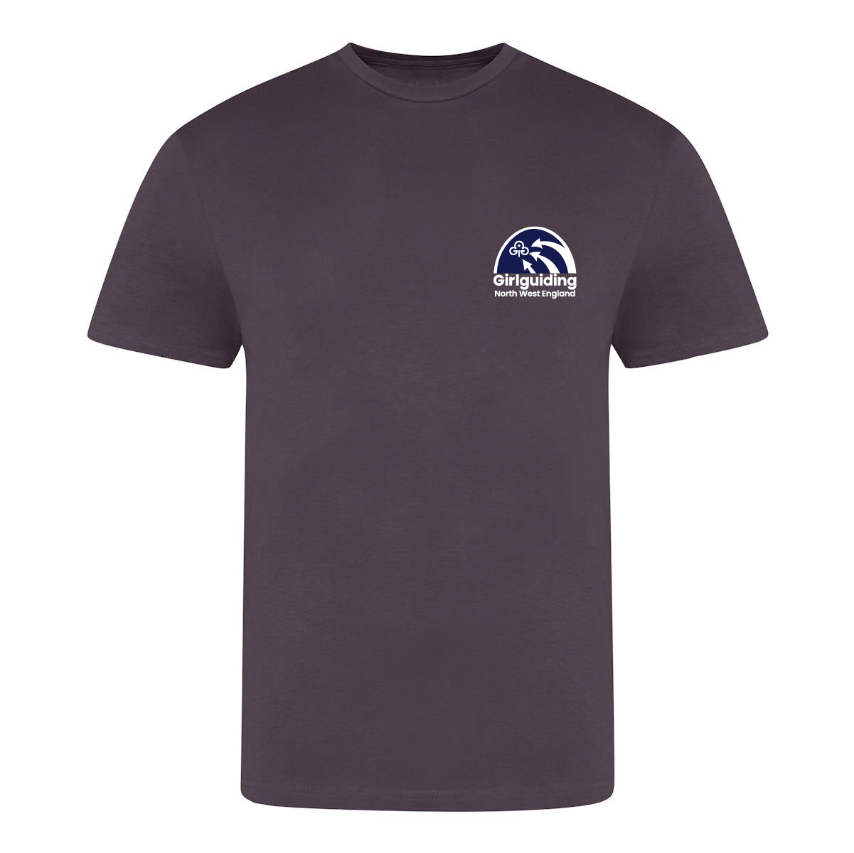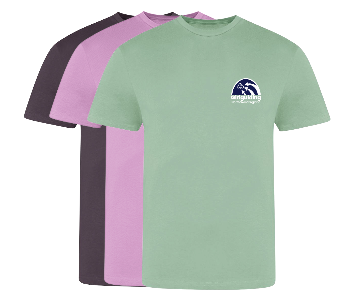 Super comfy unisex t-shirt made from 100% ringspun cotton with the Girlguiding North West England logo printed small on the front and large to the back. Available in dusty green, wild mulberry and lavender colours.
