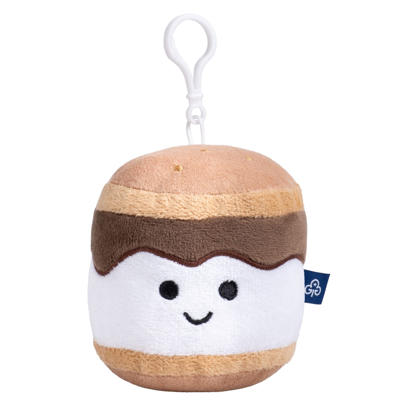 Campfire cuteness in your pocket! The s’more plushie keyring is a toasty treat with a smiling marshmallow face and chocolatey charm.