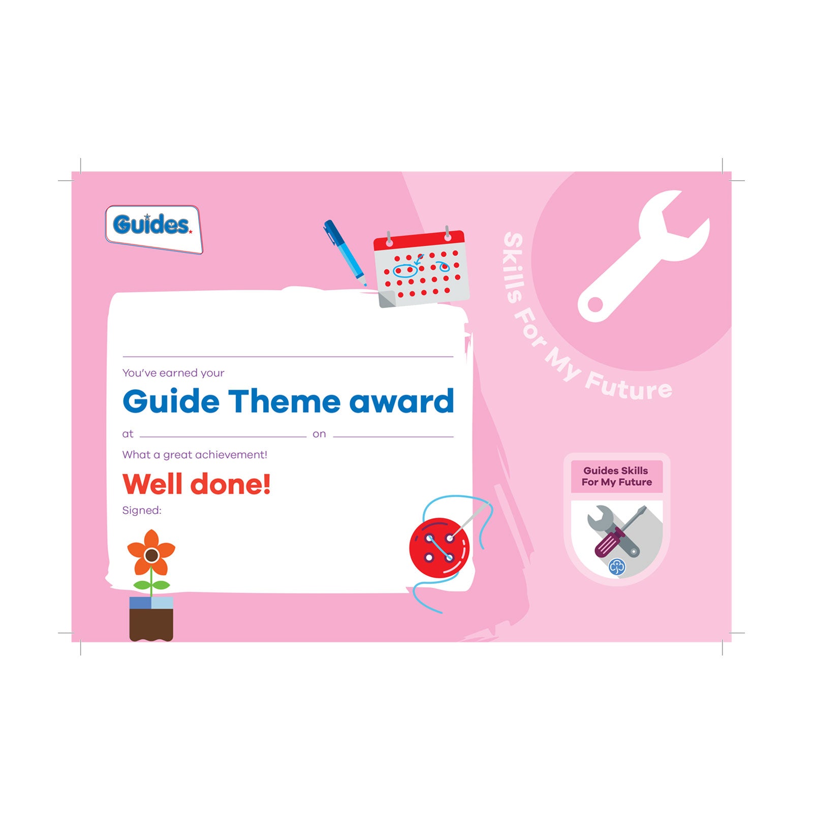 A colourful Skills For My Future Theme award certificate for Guides, to celebrate girls achievements.